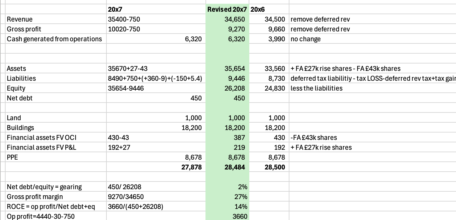Tax expense: cash for tax paid £27m is the same as the P&L tax - which is odd as deferred tax has no cash impact so it is oversatateed. Need to reduce the tax paid figure to actual amount paid,